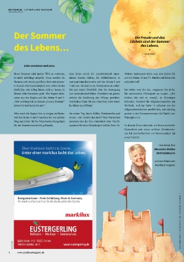 für den Sommermonat Juli gefunden. enpakete für unser Gewinnspiel auf der Seite 26. In diesem Sinne wünsche ich Ihnen weiterhin nicht mehr ertragen können. anderer ist es dann leichter, wieder Licht in das ei- Krise, ein Zurückgeworfensein auf mich selber –