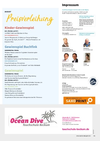Es gelten die gleichen Teilnahmebedingungen Sie gewannen Gutscheine zum Schnuppertauchen für 2 Personen.