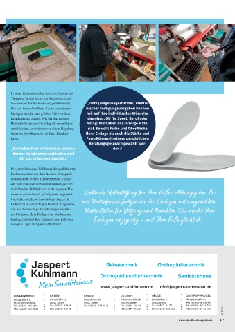 Ihre Füße sind beim Sanitätshaus Jaspert & ren Bedürfnissen fertigen wir die Einlagen mit ausgewählten