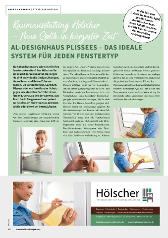 passen. Ob Sonnenschutz, Gardinen, Plissees schützen nicht nur vor Sonnenstrah- Plissees nach Maß vom Raumausstatter Hölscher