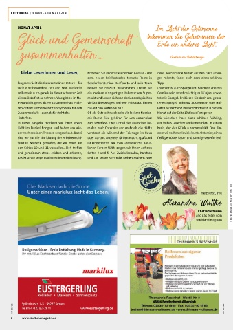 In dieser Ausgabe möchten wir Ihnen etwas zum Osterfest. Zwei Drittel der Deutschen be- ein frohes Osterfest und einen Platz in einem