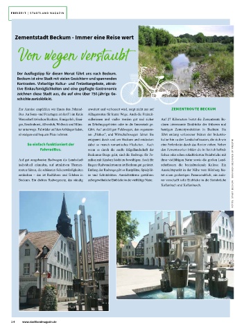 Zur Anreise empfehlen wir Ihnen den Fahrrad- erweitert und verbessert wird, sorgt nicht nur auf ZEMENTROUTE BECKUM